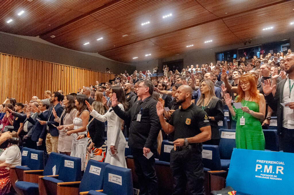 Na tarde desta sexta-feira (5), no auditório, a Câmara Legislativa do Distrito Federal (CLDF) realizou solenidade de posse de 120 servidores efetivos nomeados no ano passado e neste ano. O presidente da CLDF, deputado Wellington Luiz (MDB), deu boas-vindas aos servidores. Ele citou a dificuldade de passar em concursos públicos e parabenizou os novos servidores e seus familiares.