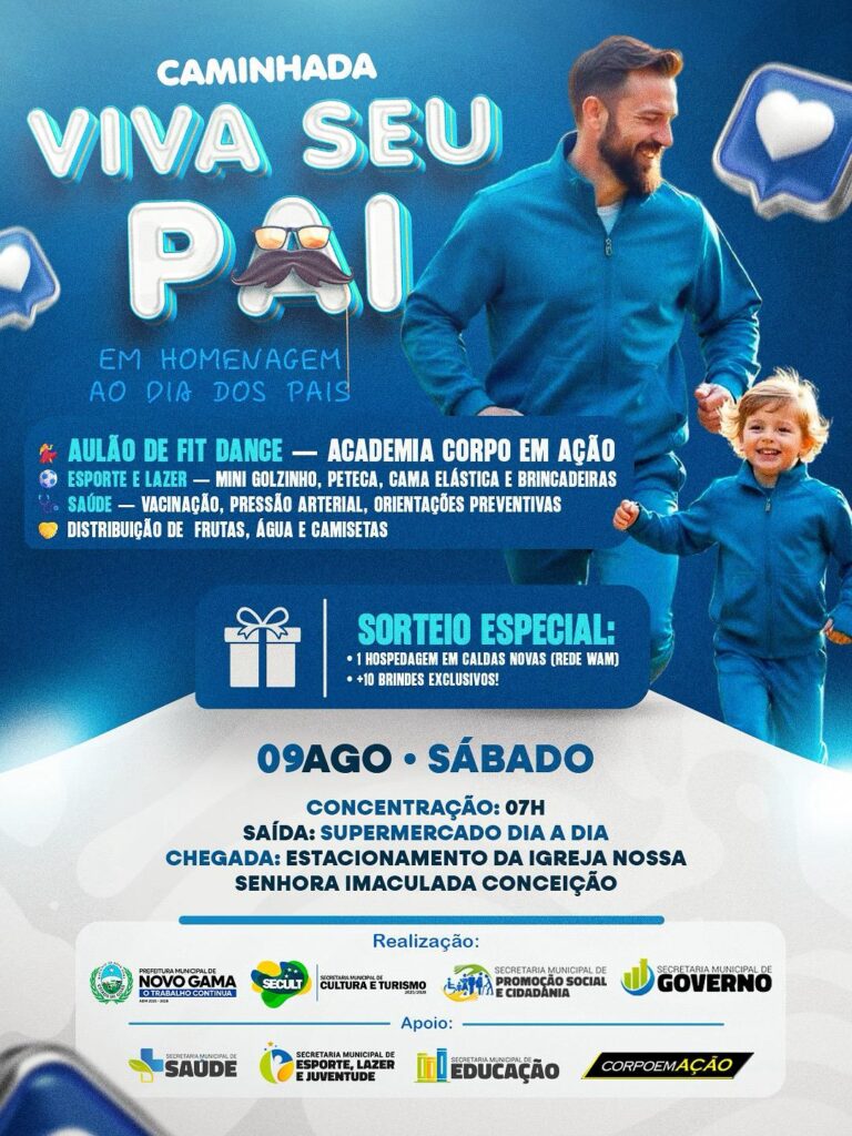 Prepare-se para uma manhã de celebração, saúde e muita alegria! No sábado, 9 de agosto, a cidade se unirá na Caminhada “Viva Seu Pai”, um evento especial em homenagem ao Dia dos Pais. A iniciativa convida toda a população a participar de uma programação recheada de atividades que prometem integrar pais, filhos e toda a família, promovendo bem-estar e momentos inesquecíveis.