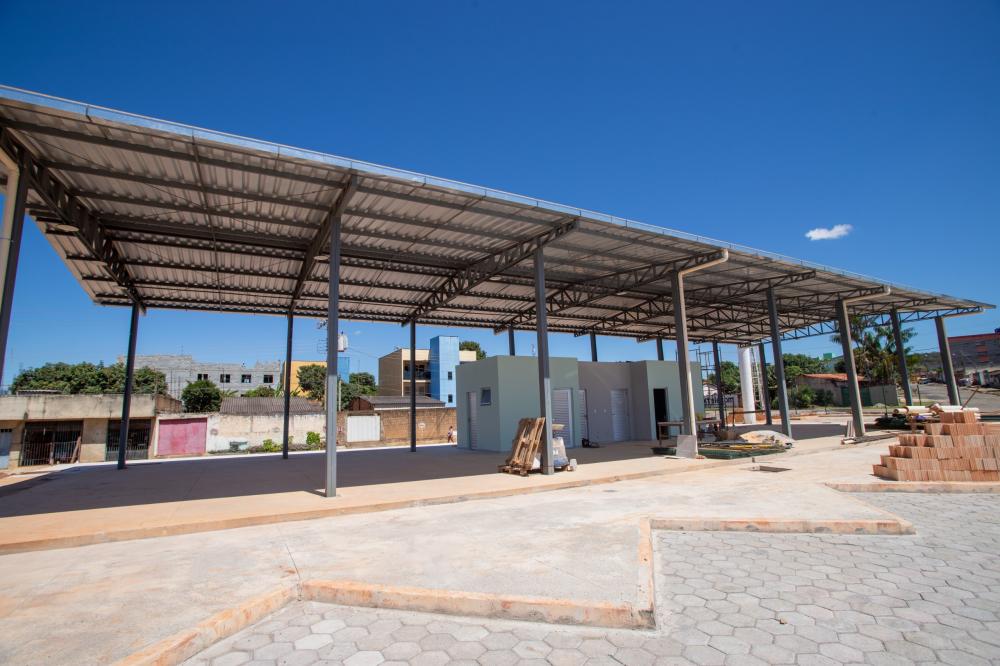 A construção da Feira do Produtor de Novo Gama já alcançou 87% de execução e segue para a fase final. Com previsão de inauguração para os próximos meses, os trabalhos atuais incluem os acabamentos internos e a instalação de equipamentos, enquanto a parte externa recebe meio-fios e a pavimentação.