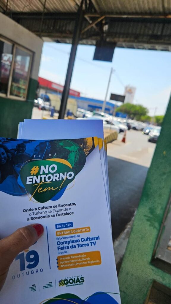 A 3ª edição da Feira #NoEntornoTem acontece nos dias 18 e 19 de outubro, no estacionamento do Complexo Cultural da Torre de TV, em Brasília, com entrada gratuita. O evento reúne o melhor da gastronomia, do artesanato, do turismo e do agronegócio dos municípios goianos que compõem o Entorno do Distrito Federal, oferecendo uma programação cultural e recreativa para toda a família.