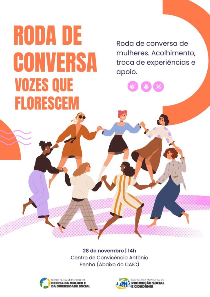A Secretaria Municipal de Defesa da Mulher e da Diversidade Social, em parceria com a Secretaria Municipal de Promoção Social e Cidadania, convida todas as mulheres do município para a Roda de Conversa “Vozes que Florescem”. A iniciativa integra as políticas públicas de acolhimento e valorização feminina, promovendo um ambiente de escuta, troca de experiências e apoio mútuo entre as participantes.